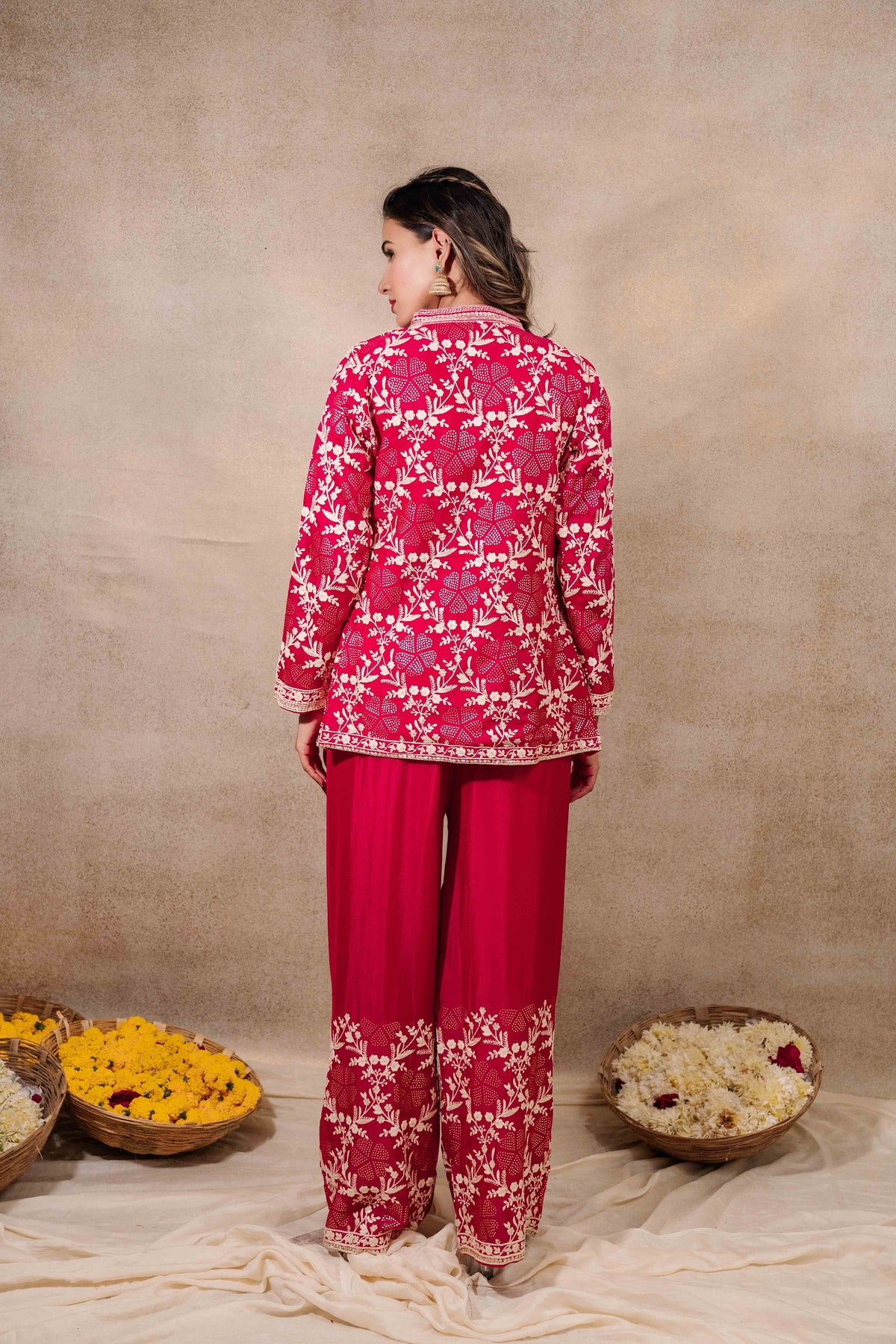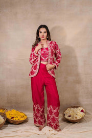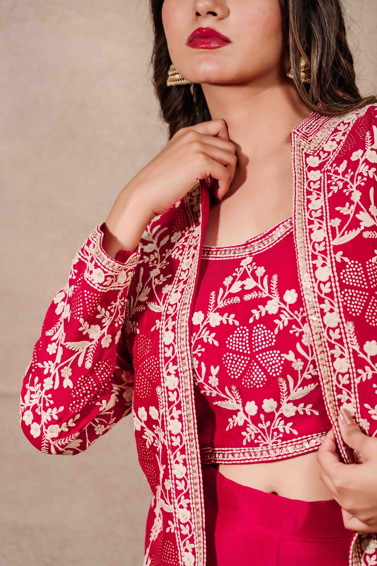Gajari Work Fabric Jacket set Indo-Western for Women - Rani / 40